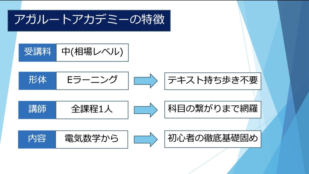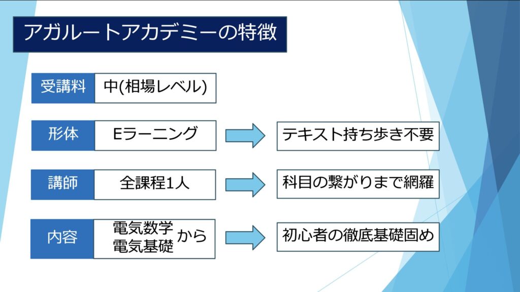 SATと同様テキストは「電気数学」からあり、自信のない方は地盤作りがしっかりとできるでしょう。