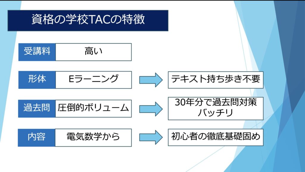 とにかく『ボリュームのある内容で確実に情報を得たい』ということであればTACをお勧めします。